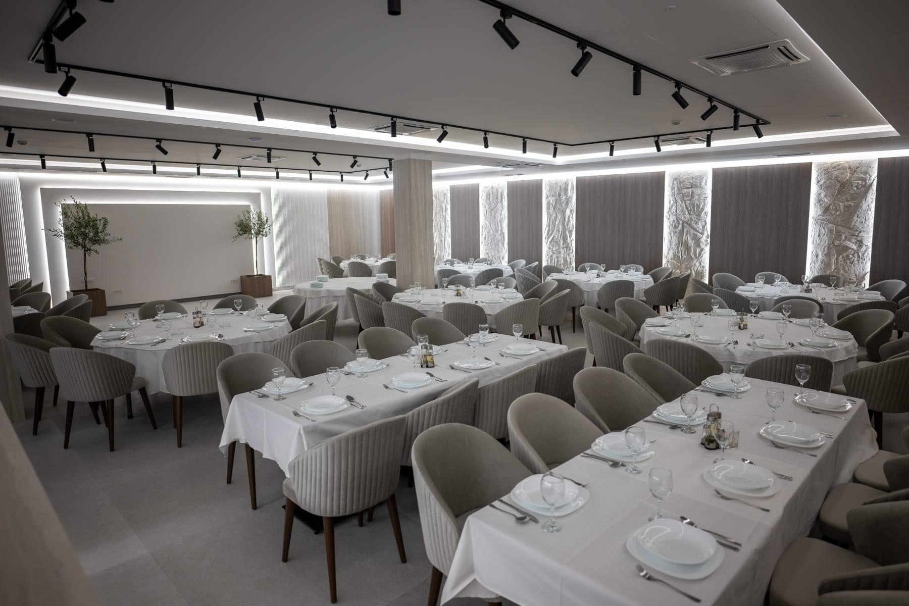 Sala je otvorenog tipa, prostorno prostrana i simetrično organizirana, što omogućava fleksibilno raspoređivanje stolova u zavisnosti od potrebe događaja. Centralni prostor je rezerviran za postavljanje okruglih i pravokutnih banket stolova, dok su periferni dijelovi funkcionalno rasterećeni, olakšavajući cirkulaciju i pristup.